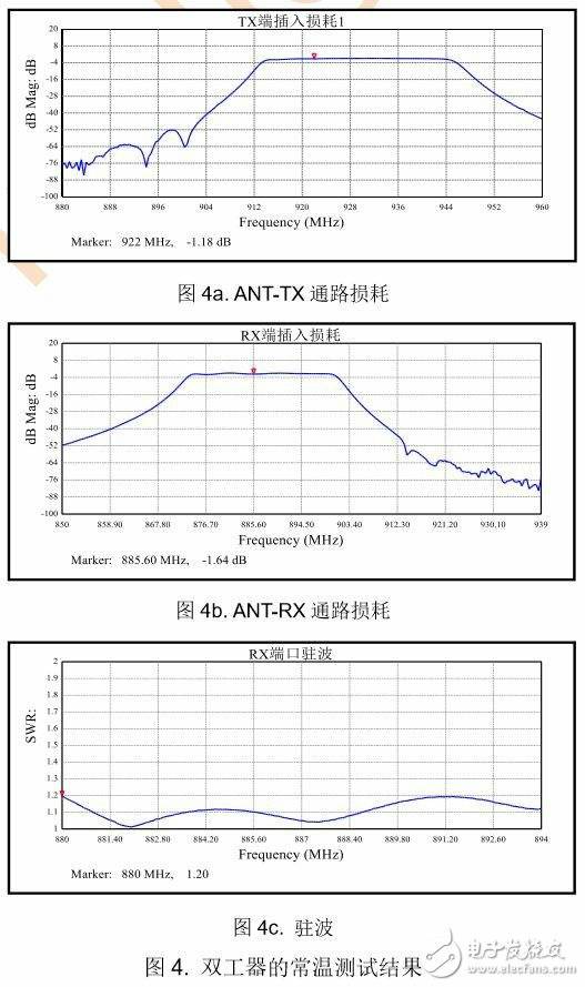 通过自动化测试软件的指令,可以自动切换不同的测试通路,依次完成双工器1和双工器2的各项指标的测试,而不需要手动更换电缆和测试端口。
